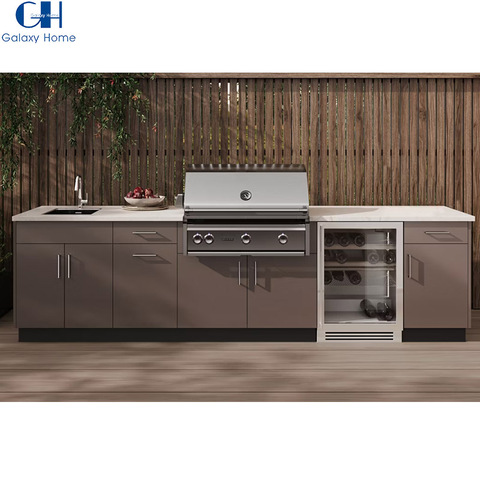 배송 준비 완료 야외 주방 캐비닛 냉장고 BBQ 주방 캐비닛 세트 방수 스틸 야외 주방 캐비닛 BBQ
